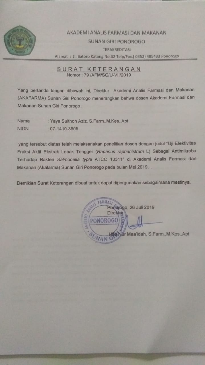UJI EFEKTIFITAS FRAKSI AKTIF EKSTRAK LOBAK TENGGER (Rapanus raphanistrum L) SEBAGAI ANTIMIKROBA TERHADAP BAKTERI Salmonella typhi ATCC 13311
